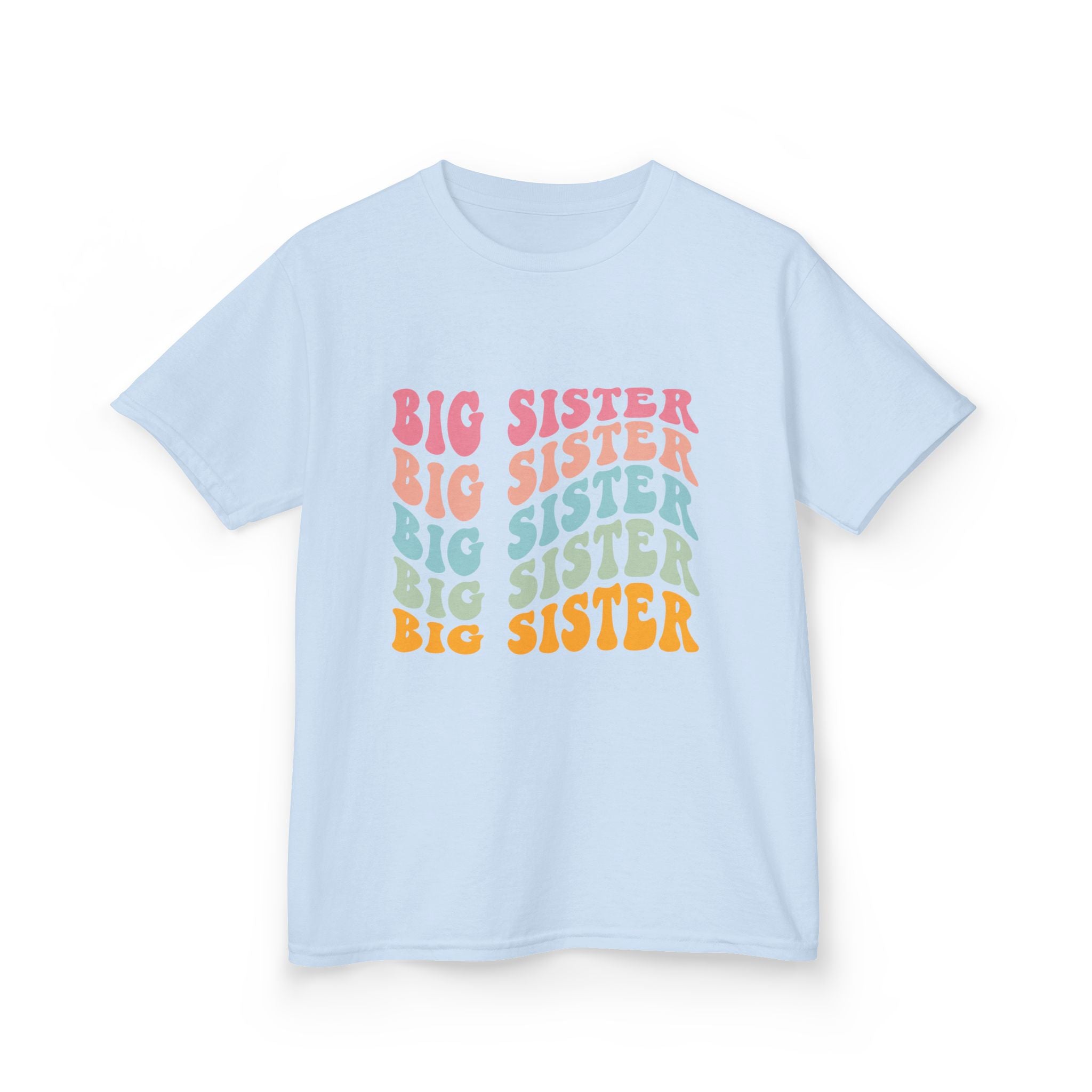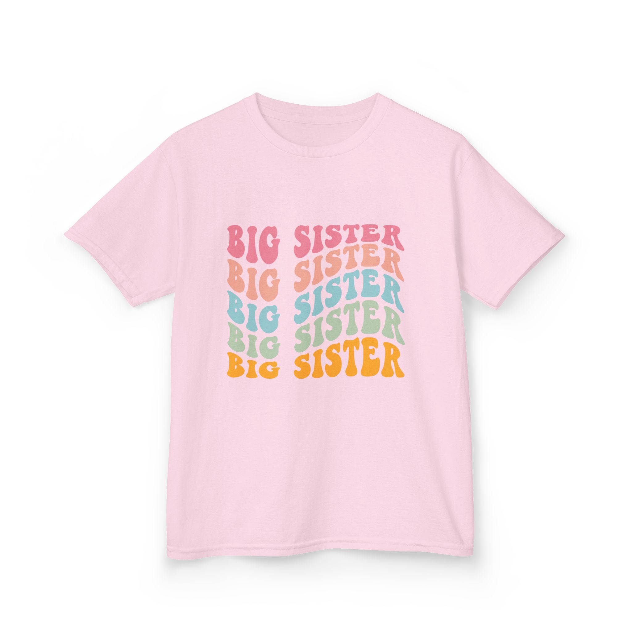 Big Sister Kids T‑Shirt — Retro Rainbow 'Big Sister' Stacked Design
