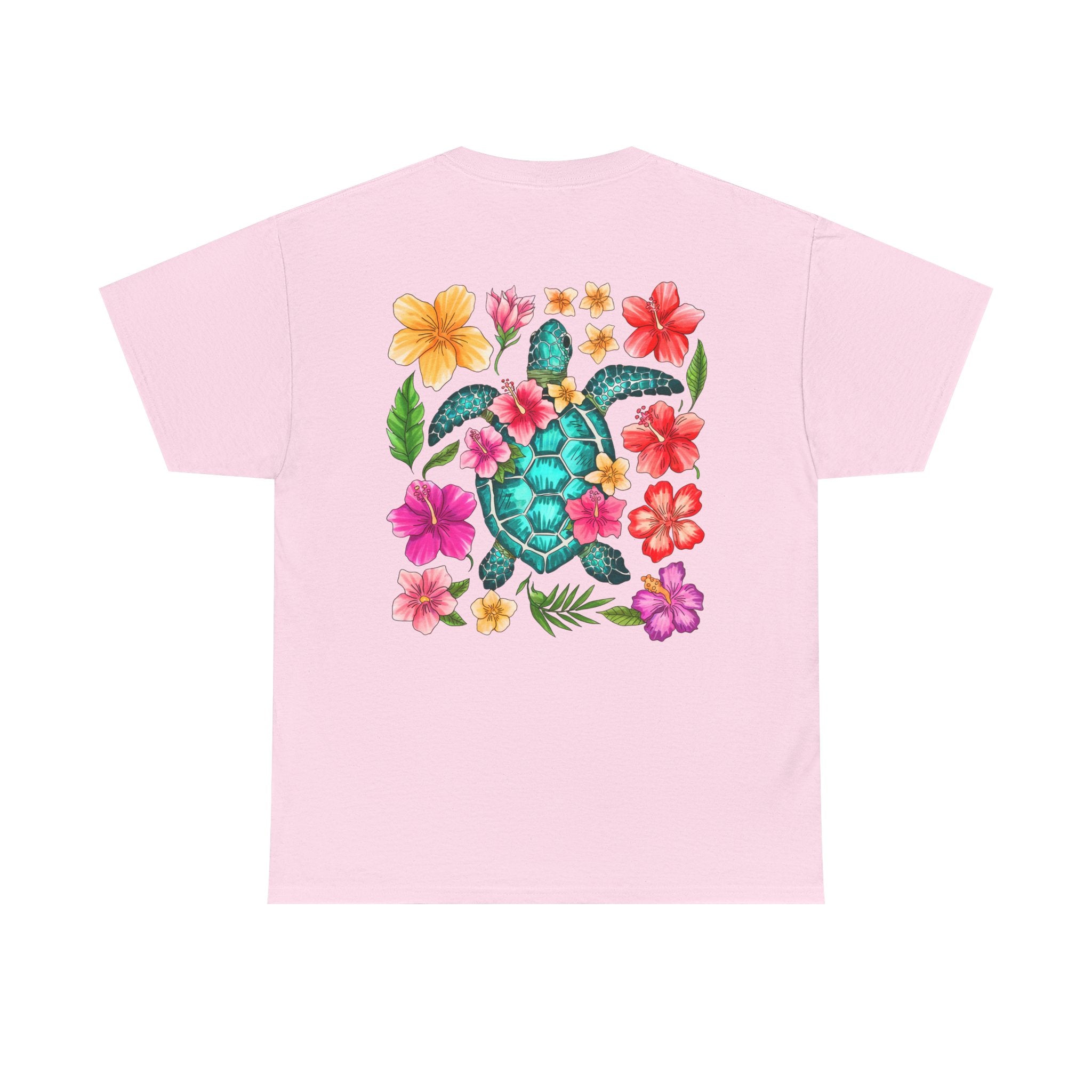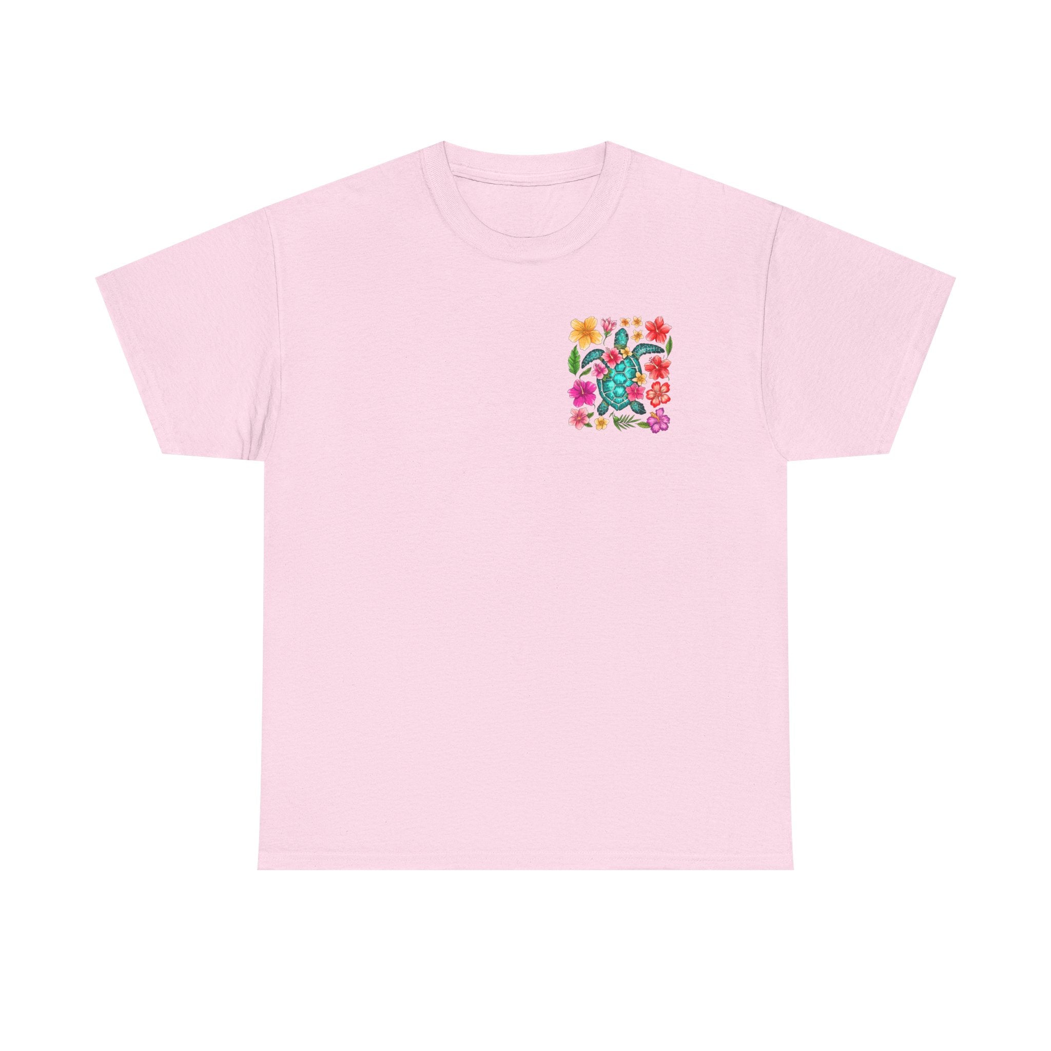 Sea Turtle Floral Pocket T‑Shirt — Colorful Tropical Flower Pocket Tee